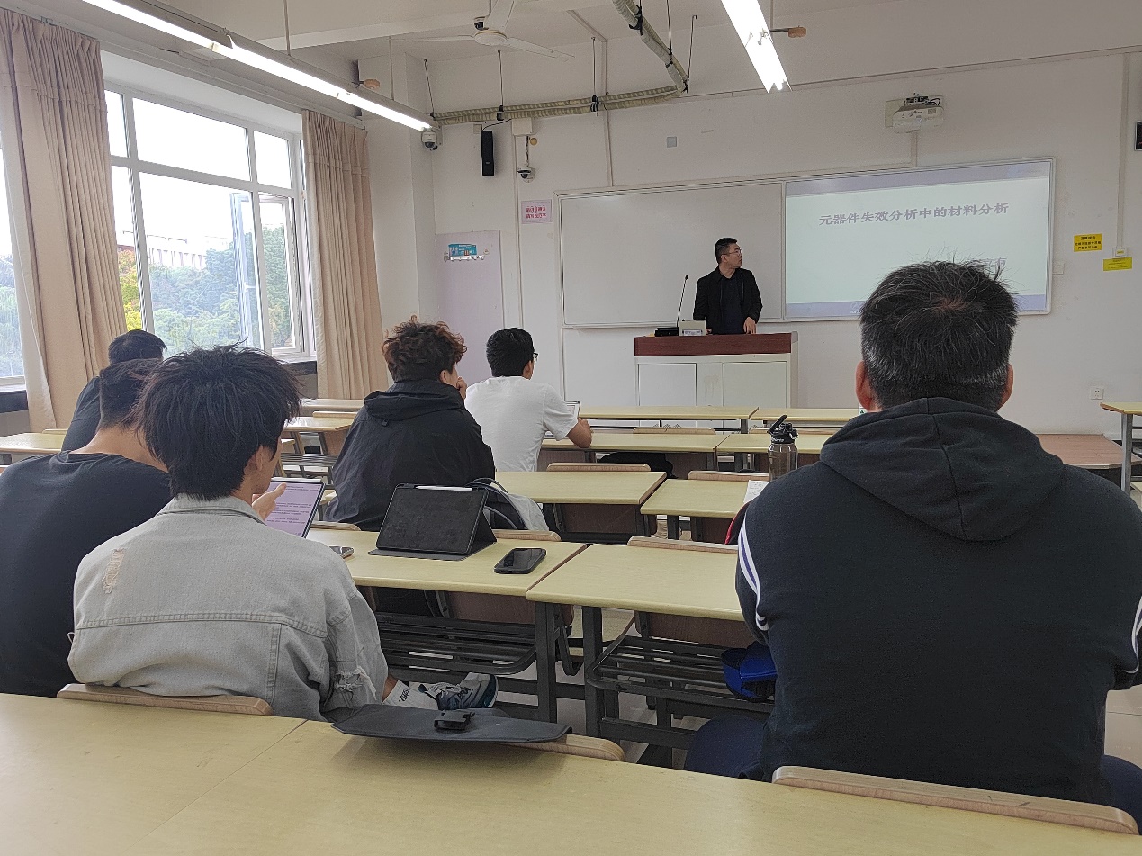 2025年10月20日下午,tyc41183太阳成集团《材料失效分析》课程邀请上海航天技术基础所赵立有主任,为材料科学与工程专业的同学们带来了一堂产教相融的“元器件失效分析中的材料分析”讲座。赵主任是中国电子元件协会专家,航天科技集团封装与管壳专业组成员。长期从事电连接器、电线电缆、电子封装的失效分析工作。对元器件失效分析和电子封装材料失效模式研究方面经验丰富,通过各种电子封装材料和电连接器失效案例使学生深刻理解课堂上所学理论知识及如何更好地应用于工程实际。通过个人亲身实践的工程案例并对不同失效形式的分析,体现失效过程“量变到质变”的哲学思想,培养学生工匠精神和社会主义核心价值观,增强学生的民族自豪感和爱国主义情怀。课堂内容以断口学应用为切入点,以电子封装和电连接器失效分析实践案例内容为重点,在课堂上深入浅出的介绍了电子封装过程中各种质量不良实例。同学们听课积极性很高,各种生活中重要的零件失效分析,强化了同学们对材料质量管控的认知,深刻体会了具备严谨务实、精益求精、质量是企业的立足之本的工科专业素养在工程上的重要意义。课堂上还与同学们进行了关于失效分析在工程中的重要性、企业的用人需求等方面的讨